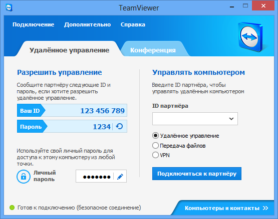 Удалённый доступ к вашим компьютерам и серверам – круглосуточно. Хотите подключиться к своим компьютерам, находясь в пути? Хотите подключиться к серверам с удалённым обслуживанием вашего клиента? Нет проблем – с TeamViewer установка на всех хостах бесплатна.